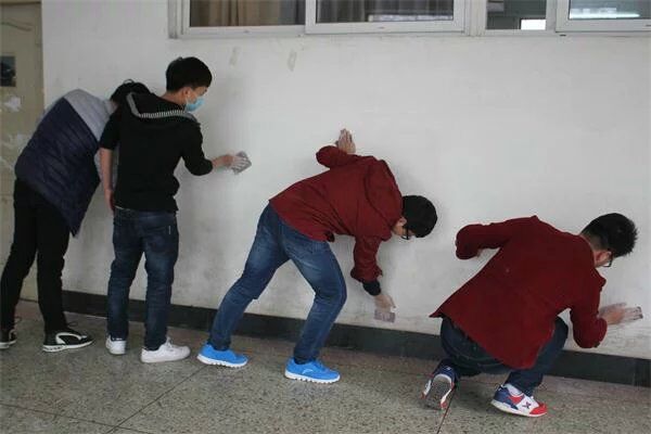 教学楼墙上顽固的小广告、窗户玻璃等地方虽然难以清理,但同学们并不服输,在砂纸和抹布等工具的帮助下,这些困难被一一克服。同学们干劲十足,不怕脏不怕累,充分展现了当代大学生良好的精神风貌。
